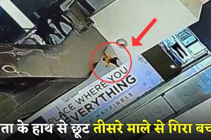 रायपुर के एक मॉल में एस्किलेटर में चढ़ते समय एक बच्चा फिसल…