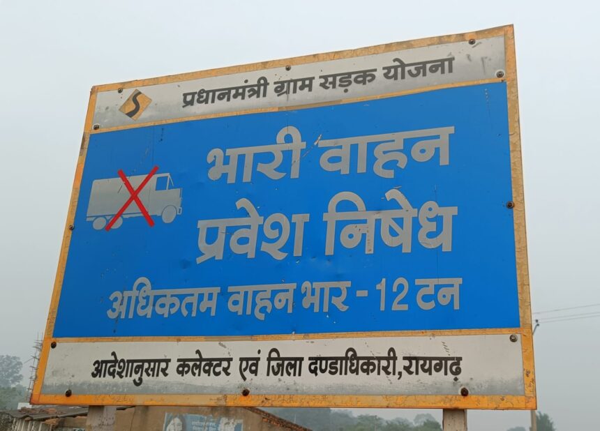 12 टन से ज्यादा वजनी वाहन प्रतिबंधित रोड पर धड़ल्ले से दौड़ रहे भारी वाहनों से जर्जर हो रही रायगढ़ कि सड़क। ग्रामीण अंचल में क्षेत्रवासियों को सुलभ आवागमन हेतु शासन द्वारा प्रधानमंत्री ग्राम सड़क की सौगात दी जाती है लेकिन इसका फायदा भारी वाहन मालिक द्वारा उठाया जा रहा है ।
