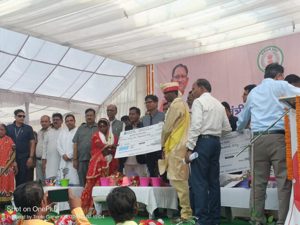 महिला एवं बाल विकास विभाग द्वारा 23 मार्च को कोसमनारा में मुख्यमंत्री सामूहिक विवाह योजना अंतर्गत 76 जोड़ों का विवाह कराया जायेगा। इस आयोजन में बतौर मुख्य अतिथि वर और वधू को आशीर्वाद देने के लिए वित्त मंत्री ओपी चौधरी भी शामिल होंगे। इसके लिए विभाग की ओर से आयोजन को लेकर तैयारियां शुरू कर दी गई हैं।